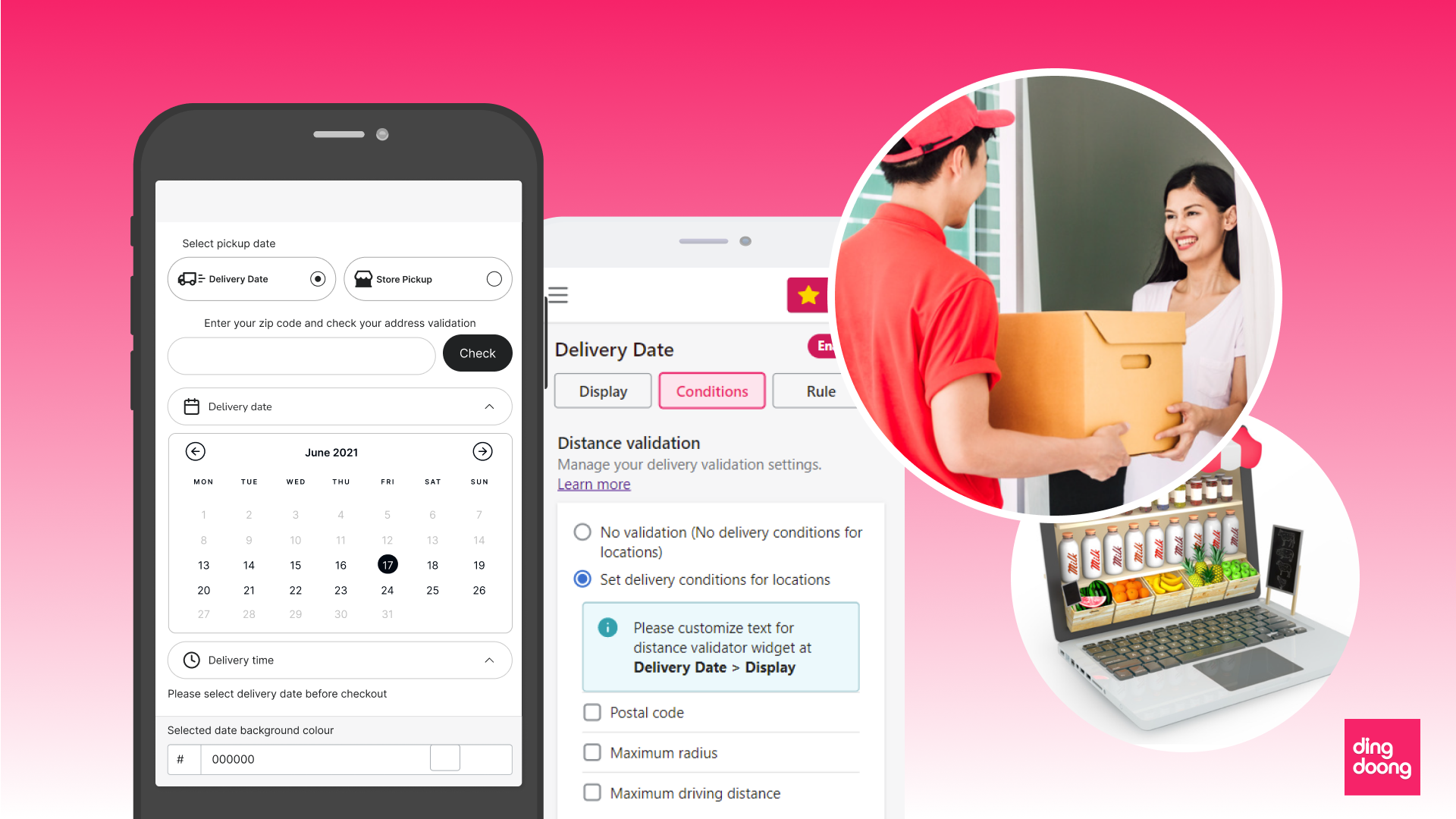 3. [Maximum radius](https://docs.dingdoong.io/local-delivery/set-up-delivery-conditions-distance-validation/maximum-radius)